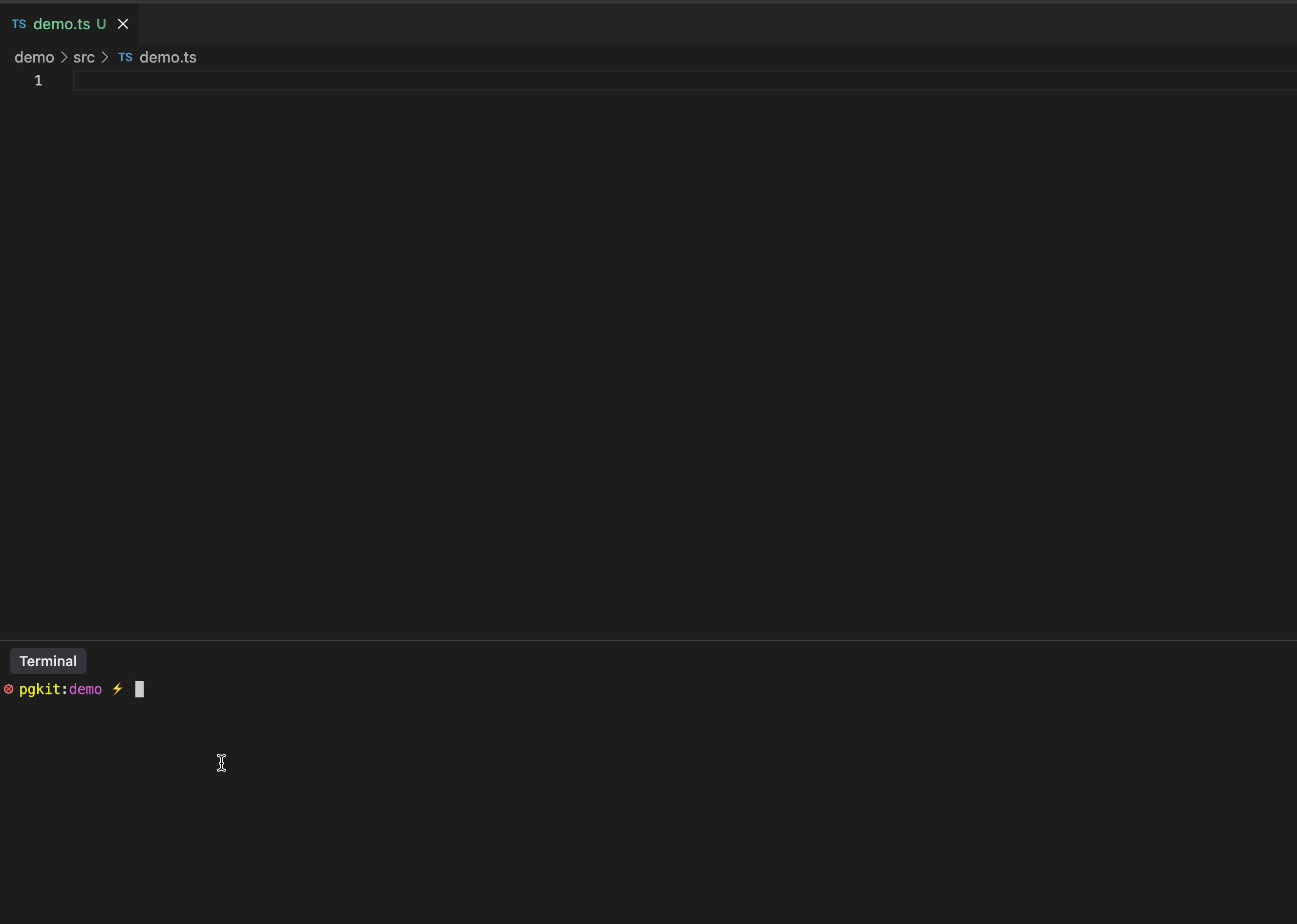 npx pgkit-typegen generateThe above command will generate types using sensible default values. It will look for code in a src directory, and create interfaces for all sql-tagged queries it finds - e.g.